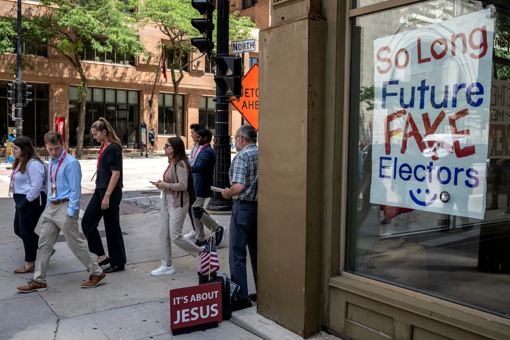 在密尔沃基的共和党全国大会期间,商店橱窗中的“未来假选民”标志。摄影师:维克托·J·布鲁/Bloomberg虚假信息正在以前所未有的规模渗透2024年美国总统选举,在线煽动者在数百万美国人投票时加剧了对选举过程完整性的怀疑。