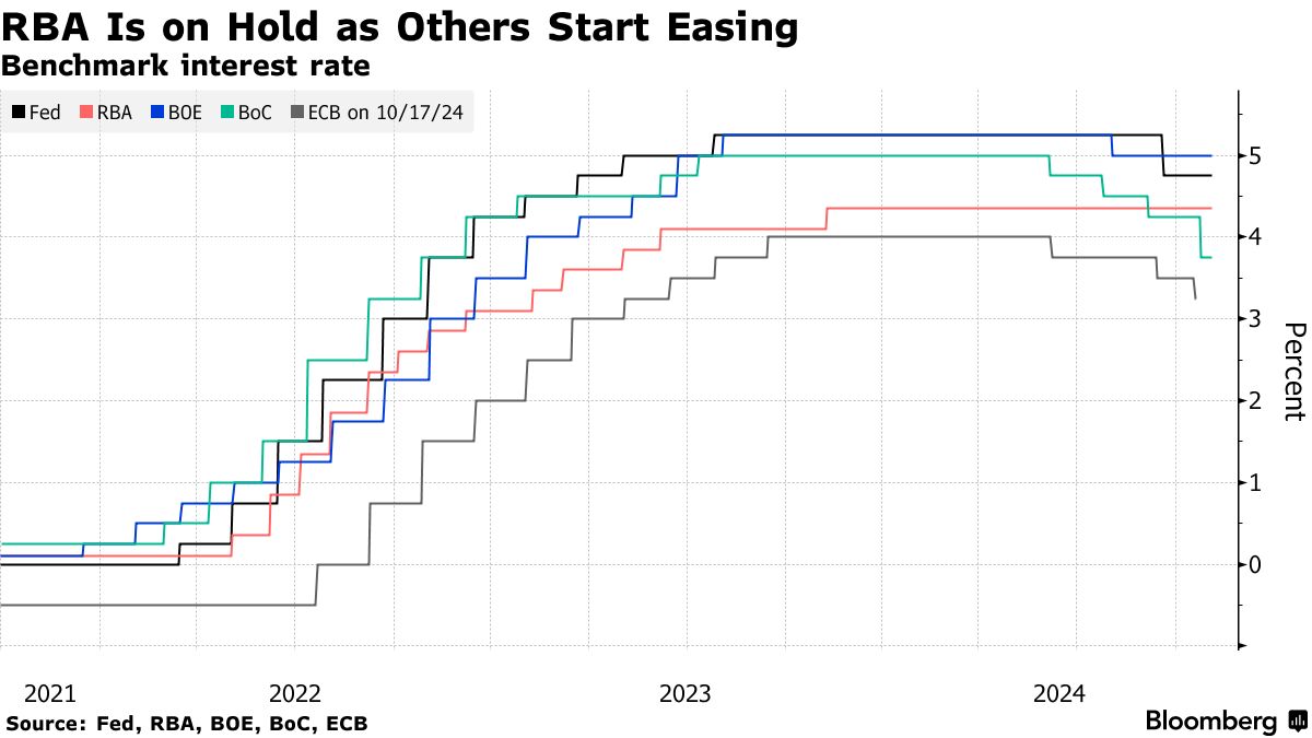 第二天,澳大利亚官员预计将现金利率目标维持在4.35%,因为消费者通胀在截至九月的三个月内保持高位,这巩固了政策制定者在转变之前需要等待的观点。