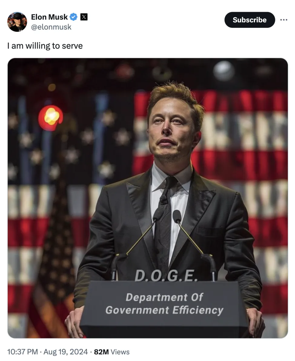 马斯克在特朗普圈子中的立足点可能为他的商业组合增加直接的政策制定权力——让他在 公共财政上有发言权,并有机会将他特有的“快速行动和打破常规”的风格带入社会保障和医疗保险等热门项目的基础。