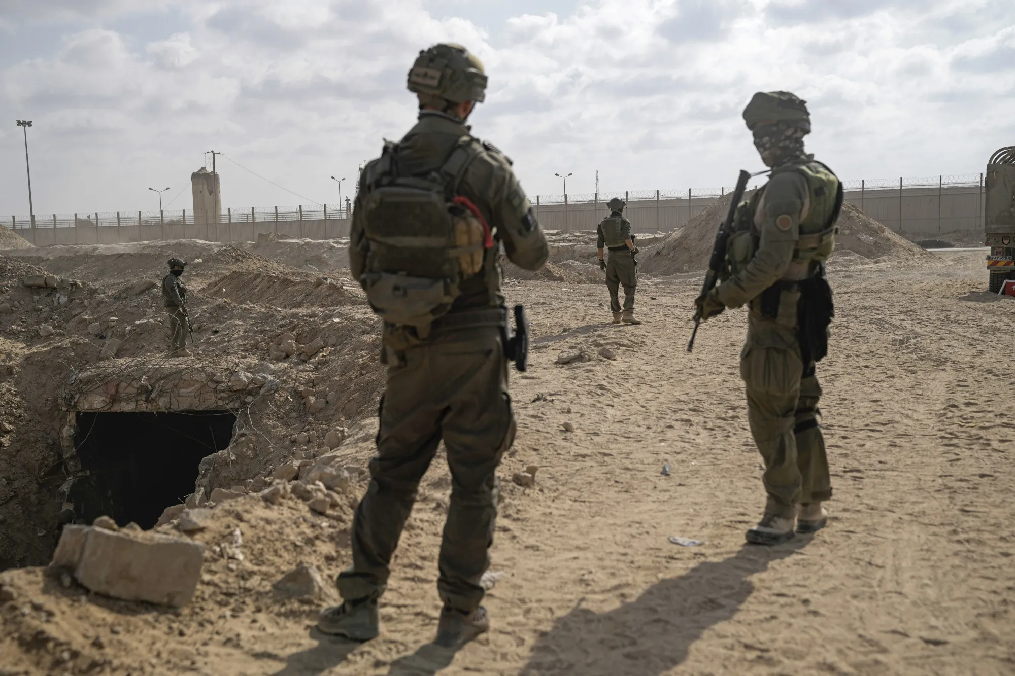 以色列士兵在加沙地带南部与埃及接壤的隧道入口旁。