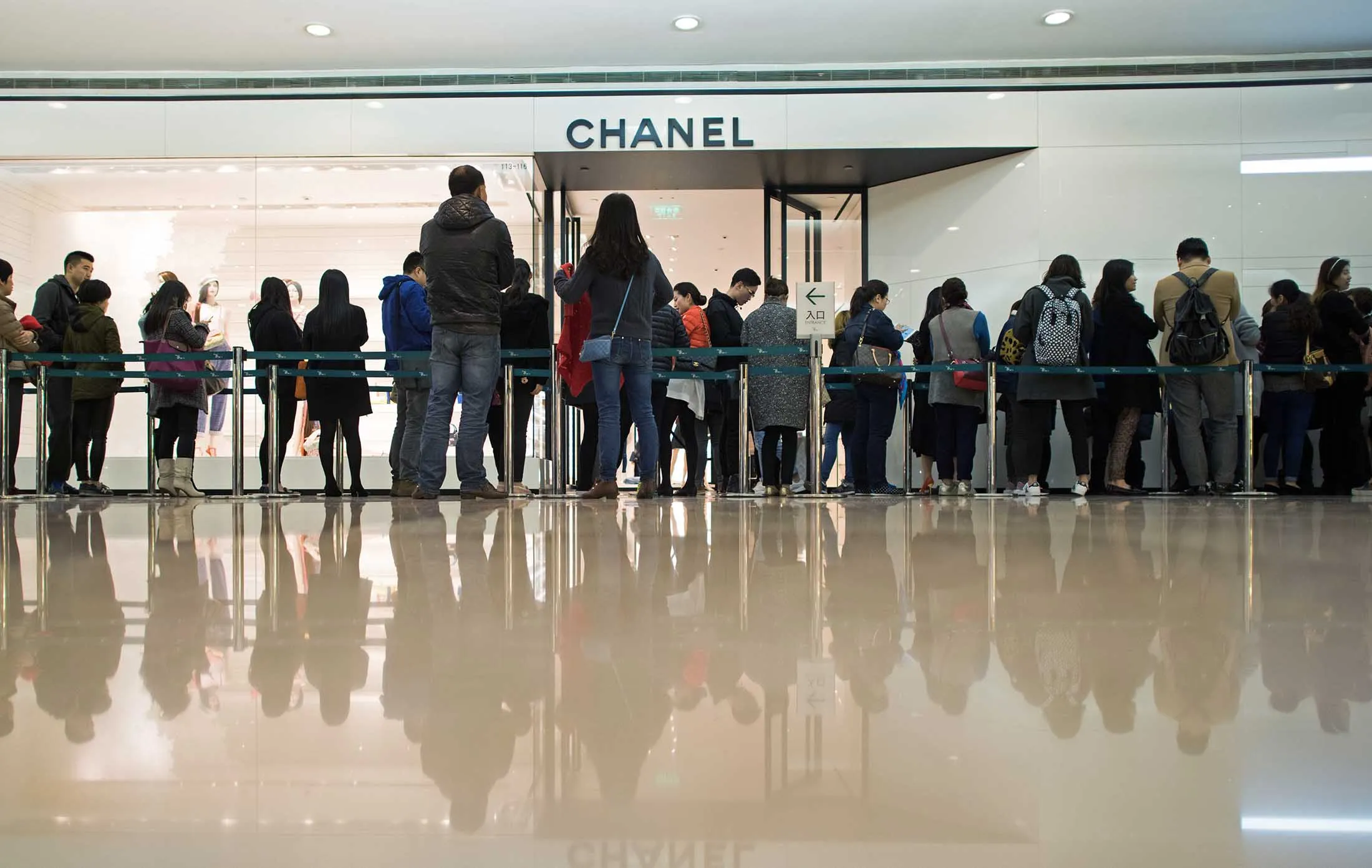 2015年,顾客在上海的一家香奈儿店外排队。摄影师:约翰内斯·艾塞尔/法新社/盖蒂图片社现在,需求正在急剧下降,因为早期的 预测认为疫情后消费的繁荣将持续的想法被证明是错误的。