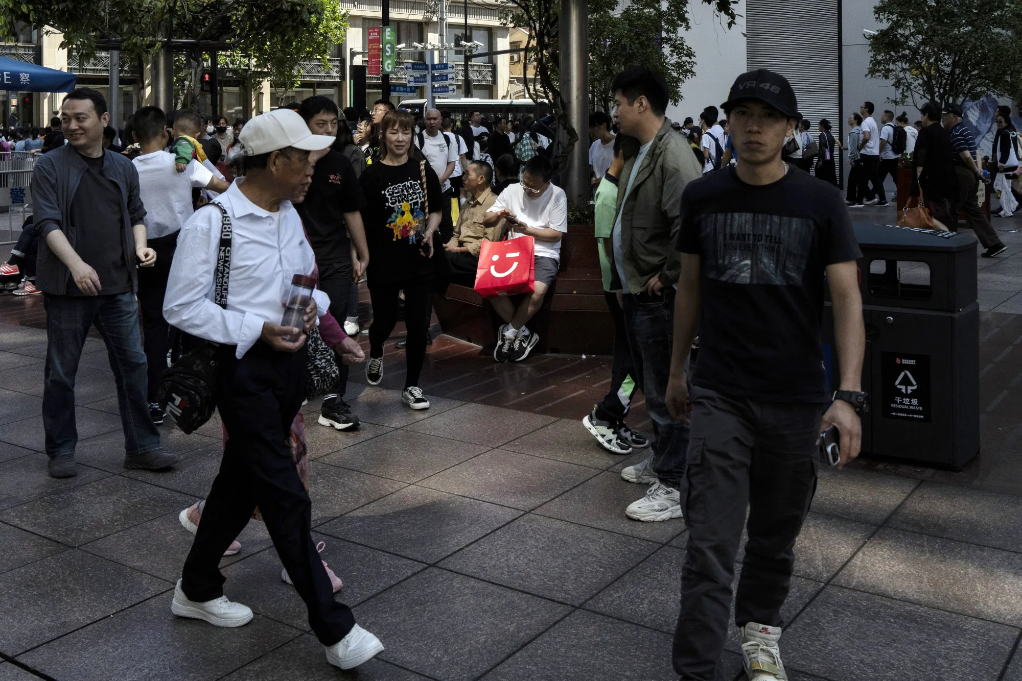 在10月2日的黄金周期间,一位手提Miniso购物袋的顾客在上海南京东路上。摄影师:沈启来/彭博社中国的奢侈品正在被“降级,尤其是对于中等收入者,”咨询公司 Luxurynsight 的首席执行官乔纳森·西博尼表示,他的公司数据显示,四分之一的中国消费者认为西方品牌比12个月前吸引力下降。