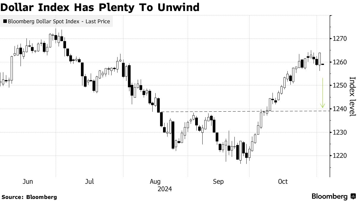 美元的指标自九月底以来跌幅最大,国债期货上涨,因为周二美国选举前的民调数据促使一些投资者削减所谓的特朗普交易。