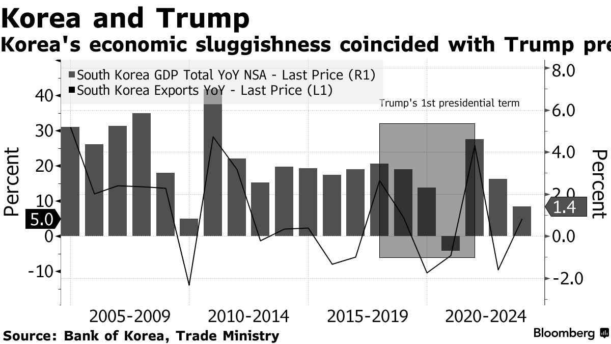 如果特朗普赢得选举并兑现其实施最高普遍关税的承诺,韩国经济可能萎缩多达0.67%,这将导致出口减少数百亿美元,根据韩国国际经济政策研究院的一项研究。