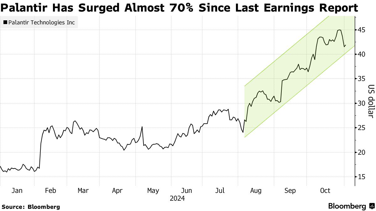 在今年超过140%的人工智能驱动的猛烈反弹之后,门槛很高。华尔街对Palantir变得越来越谨慎,平均目标暗示未来12个月将下降超过30%。与此同时,投资者对与人工智能相关的公司仍然保持警惕,希望看到这项新兴技术带来更切实的成果。亚马逊公司、微软公司、Meta Platforms Inc.和苹果公司的收益反应不一。