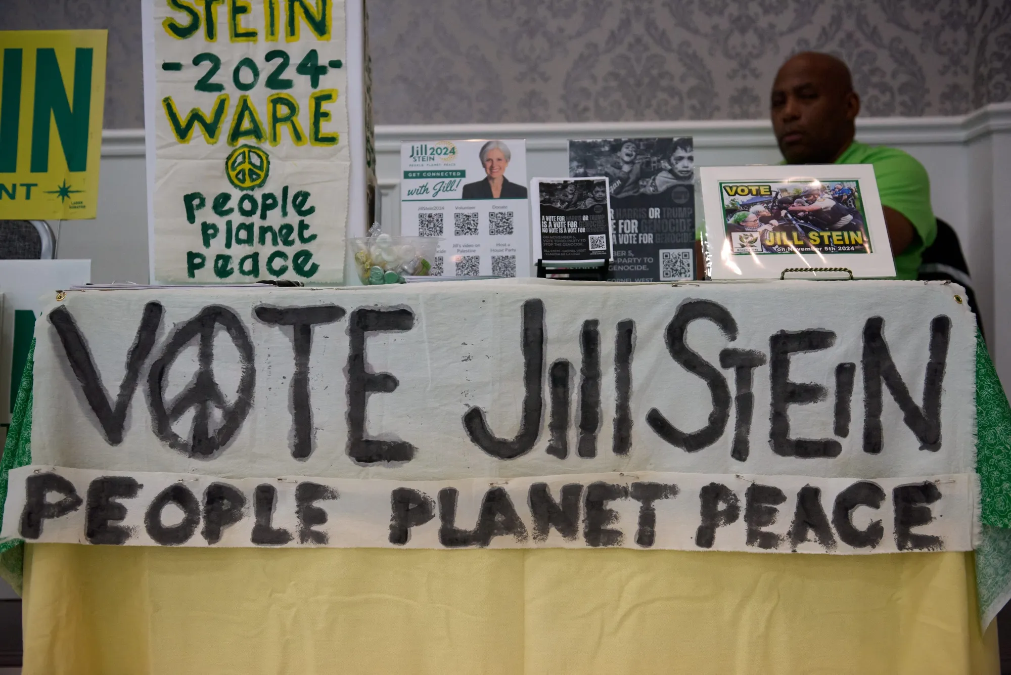 斯坦的顽固拒绝退出竞选威胁到了这一切,因为她可能在关键州从哈里斯那里夺走决定性的选票,而这些州哈里斯与特朗普的选情统计上处于僵持状态。如果这仅仅是绿党未能理解在美国常常适得其反的两党制下采取原则立场的影响,你几乎可以原谅。但近年来它的日益增长的财务和哲学与俄罗斯的联系——斯坦曾经与弗拉基米尔·普京和前特朗普顾问迈克尔·弗林共进晚餐——使其动机令人怀疑。将国家的控制权交还给亲俄的混乱代理人特朗普似乎是该党的决策中的一个特征,而不是一个缺陷。