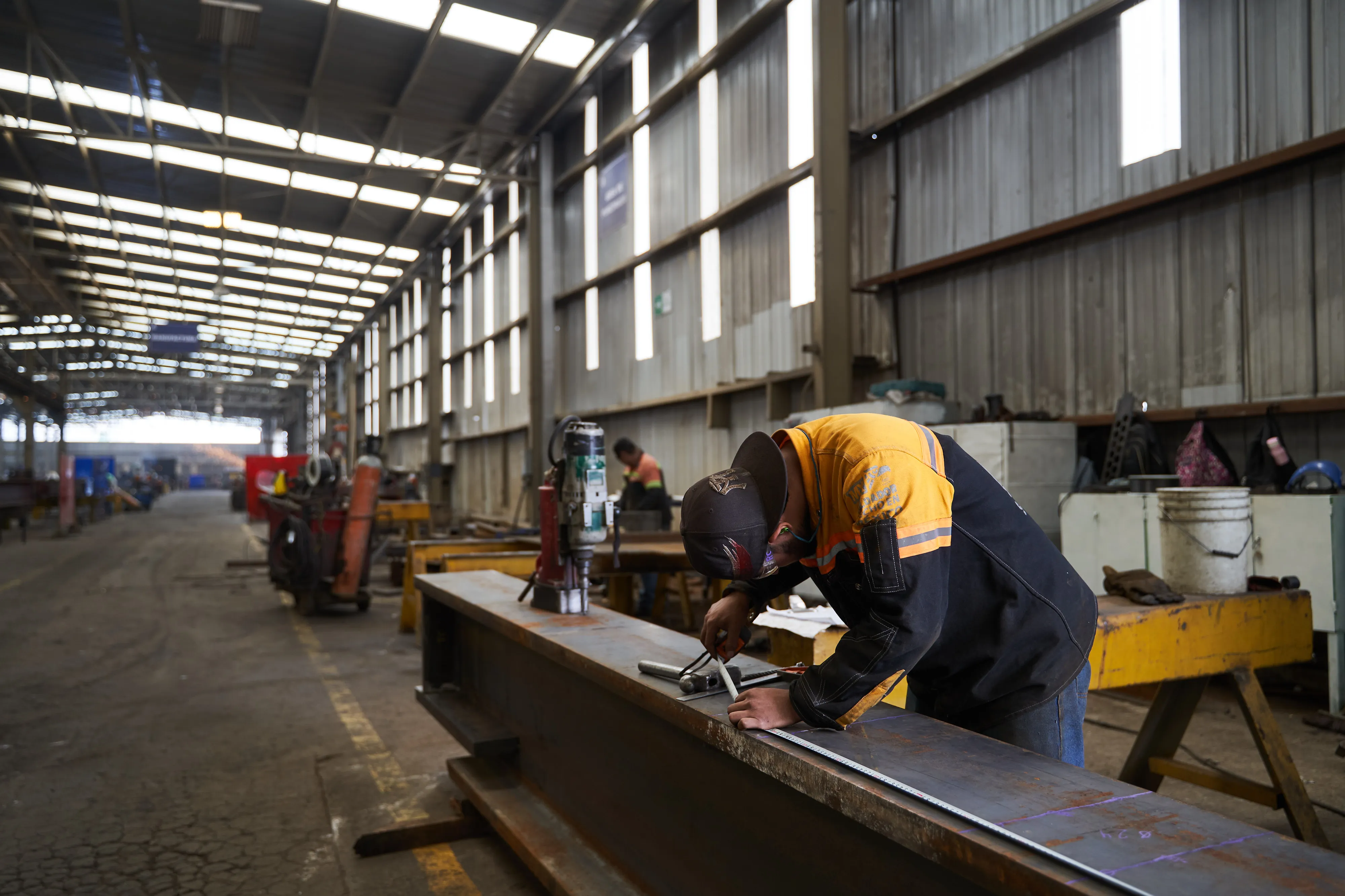 一名工人在墨西哥圣路易斯波托西的钢铁制造厂测量梁的尺寸。摄影师:毛里西奥·帕洛斯/彭博社墨西哥人民在11月5日的美国总统选举中没有投票权,但他们对结果有很大的期望。