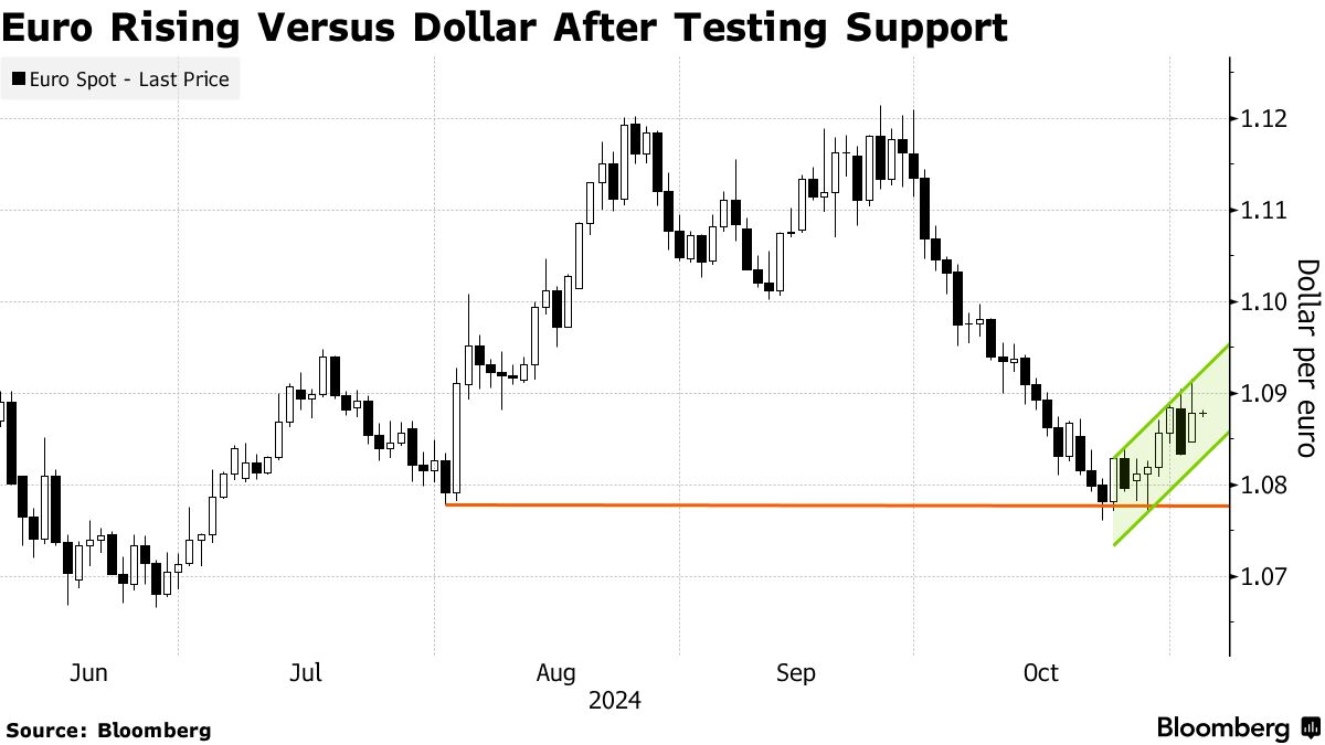 在 $3000亿以上 的货币期权市场中,头寸支持这一趋势:在存托信托与清算公司,11月到期的欧元-美元看涨期权交易超过2亿欧元(2.18亿美元),其数量超过看跌期权的比例超过2.5比1。这一高于正常水平的赌注将受益于欧元对美元的升值。