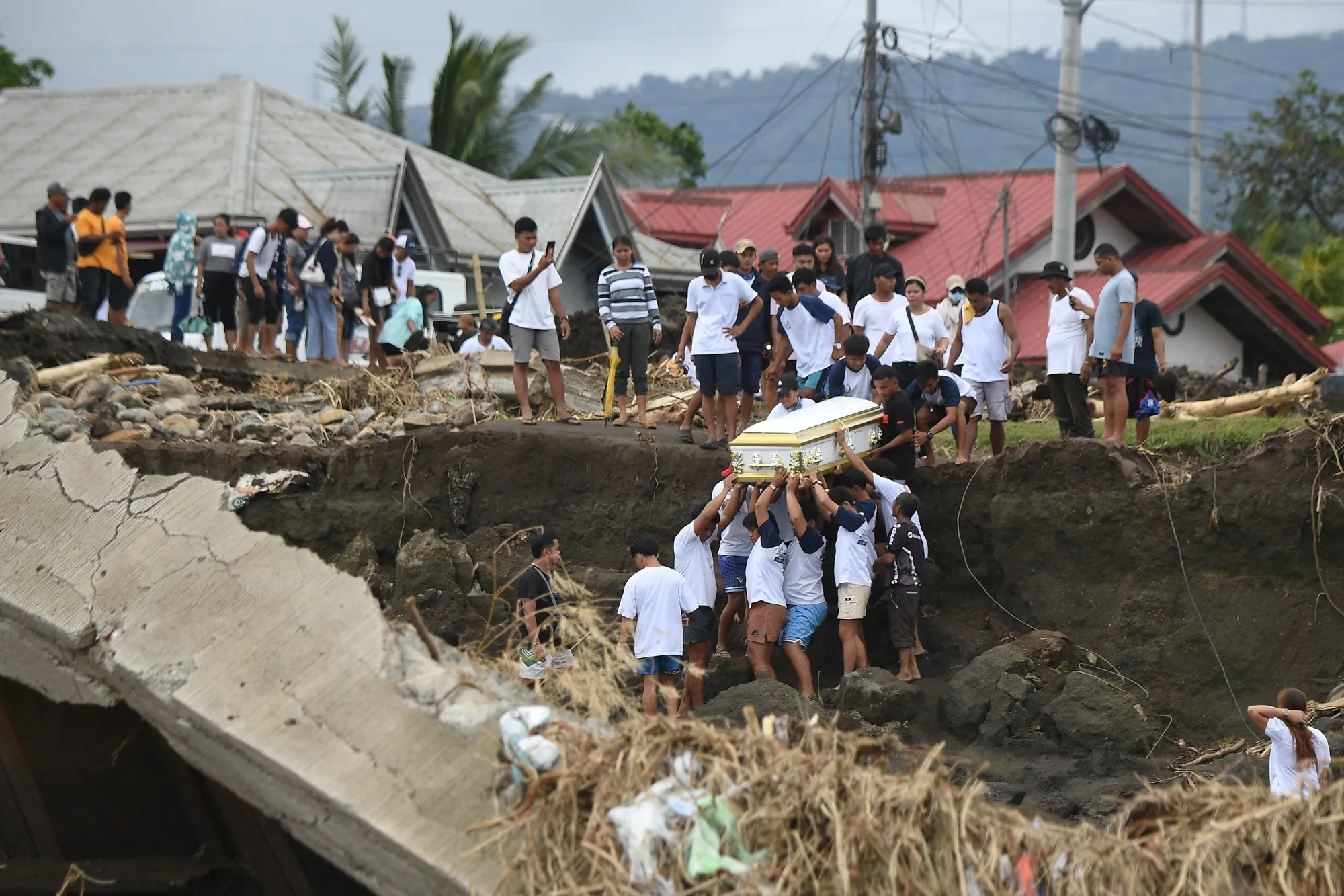哀悼者在10月30日的葬礼队伍中抬着一具棺材,经过被热带风暴特拉米带来的洪水冲毁的河岸。摄影师:Ted Aljibe/AFP/Getty Images菲律宾的主要岛屿吕宋岛仍在承受上个月严重热带风暴特拉米的直接袭击,该风暴造成超过100人遇难,并给农业部门造成62亿比索的损失,这是自2020年台风戈尼以来的最高损失。克拉通和孔瑞也在10月给全国北部带来了大雨,它们在离岸追踪后袭击了台湾。
