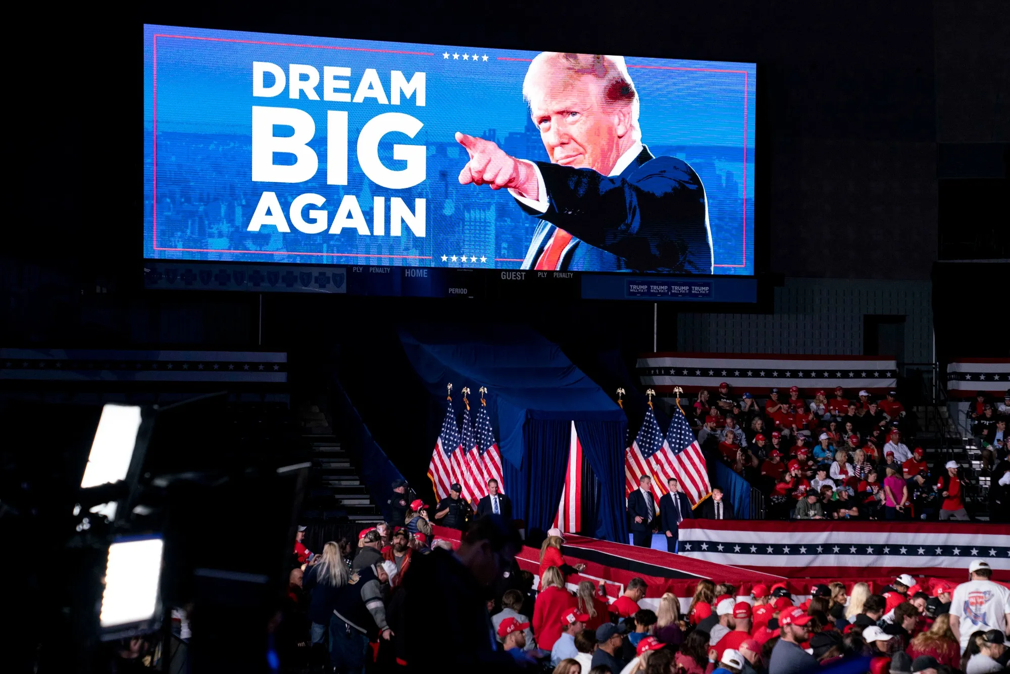 与前美国总统唐纳德·特朗普的闭幕活动中的标志。