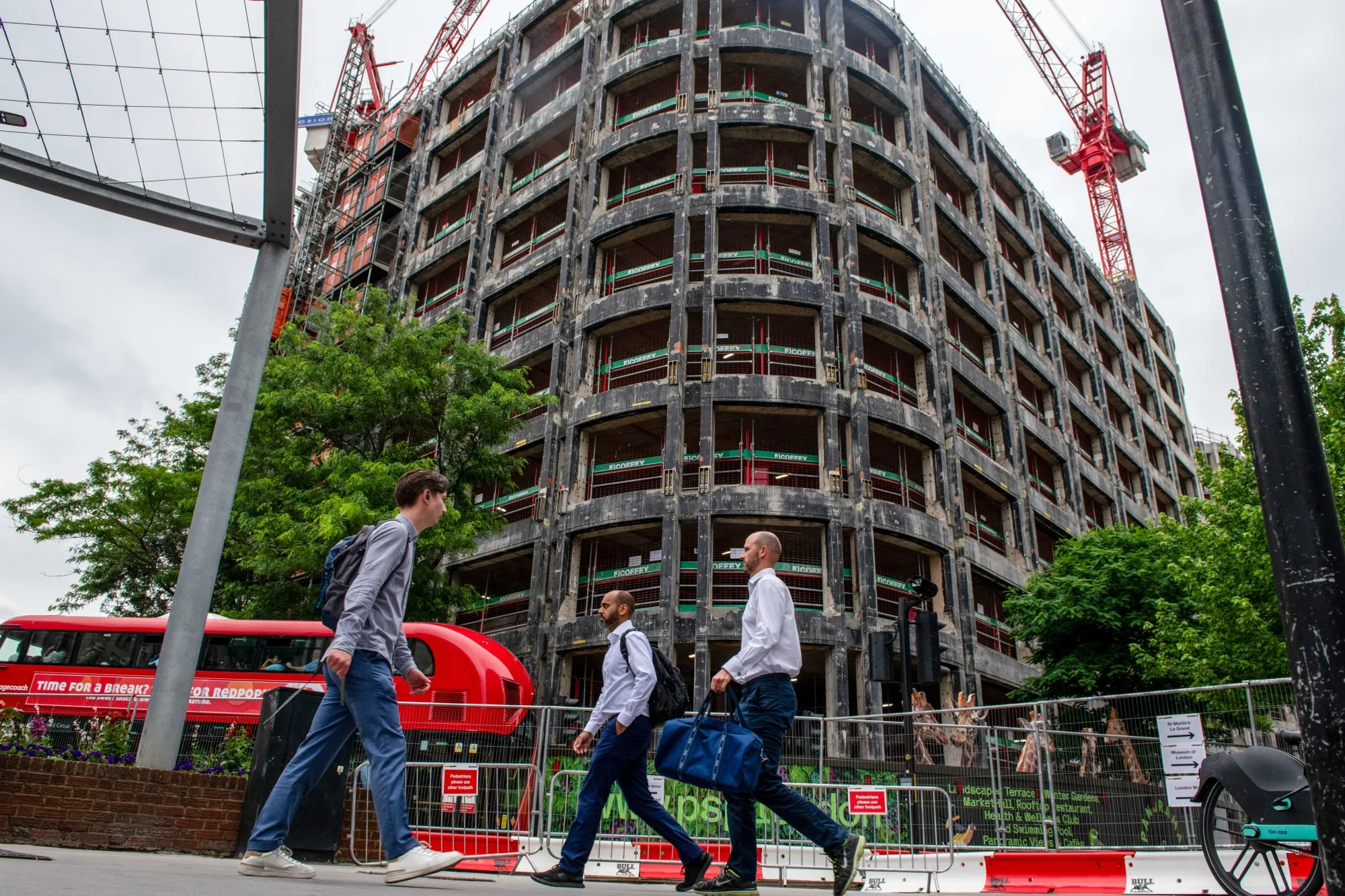 伦敦圣保罗未来汇丰银行办公室的施工现场。摄影师:克里斯·J·拉特克利夫/彭博社### 明天你需要知道的