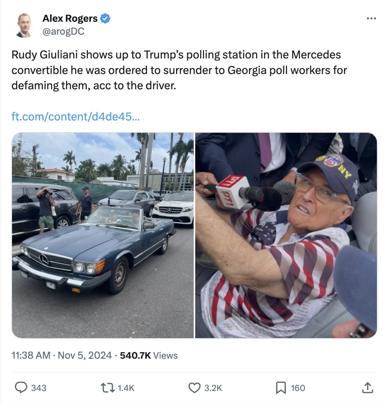 显然,这个国家需要理顺其财政。掌权者可以从 没收 鲁迪·朱利安尼的1980年梅赛德斯开始,我相信这可以支付部分账单……