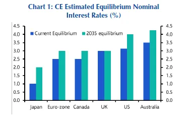 现在下降已经开始,下一阶段涉及中性实际利率(R*,或R-star),在这个利率下,利率对经济的限制不太严格,价格保持稳定。回报点在 这里 写过关于R-star的内容;像许多金融数字一样,它存在但在实时中是不可知的。Capital Economics的詹妮弗·麦基翁试图预测发达市场利率的低谷,并表示,自全球金融危机后的十年间,发达经济体的中性利率显著上升,并将进一步上升。这是她对未来10年的估计:
