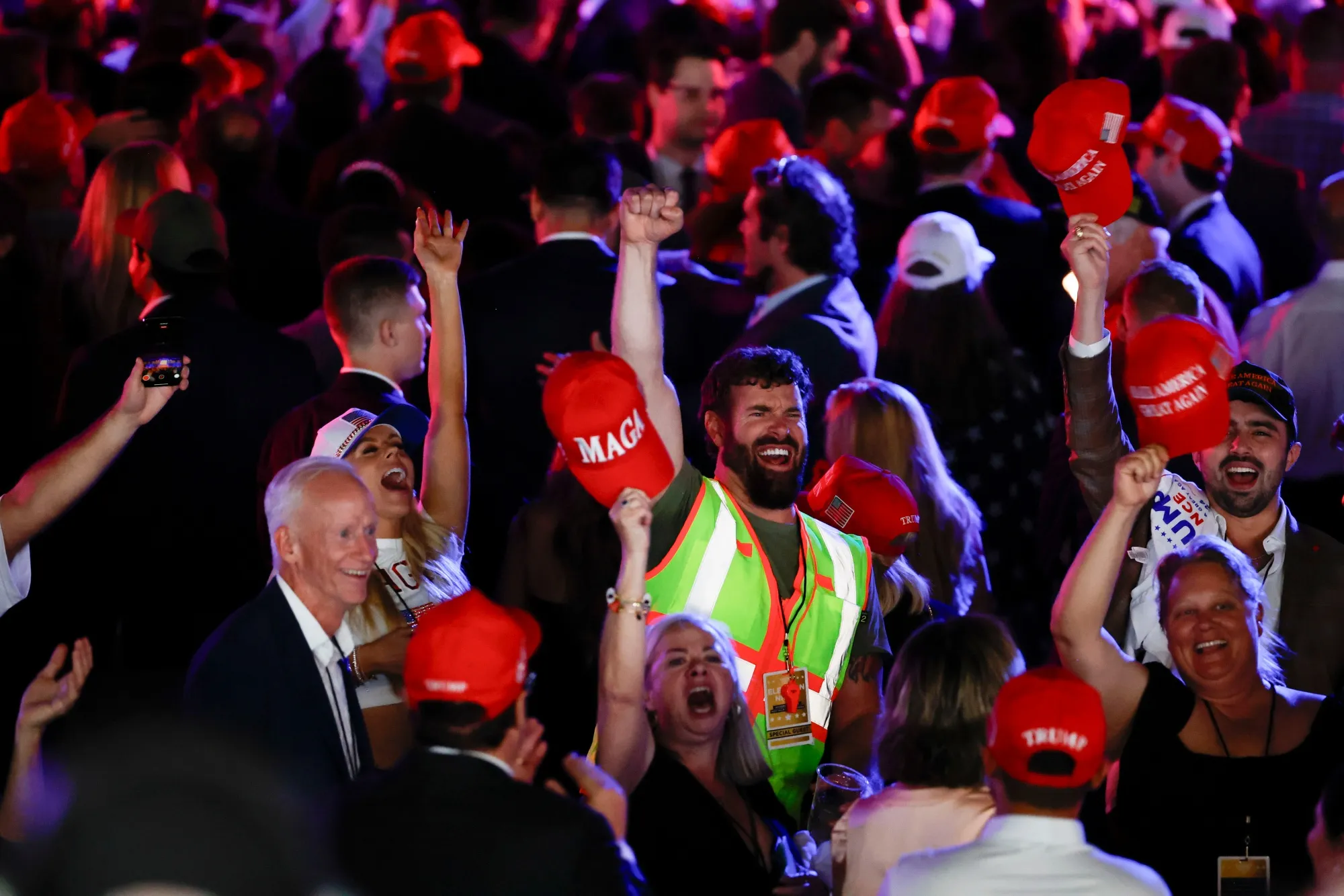 佛罗里达州选举之夜活动的与会者在结果播报时作出反应。摄影师:埃娃·玛丽·乌斯卡特吉/彭博社现在一个关键问题是共和党人是否最终获得“三位一体”——控制参议院、众议院和白宫——还有数十个竞争激烈的众议院选举尚未揭晓。更多进展: