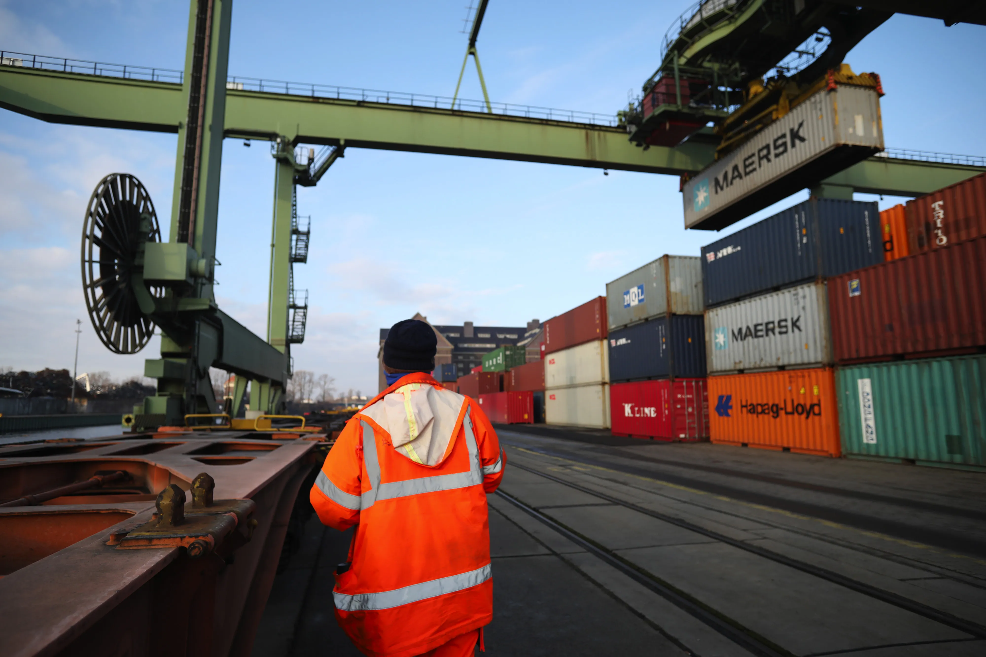德国柏林贝哈拉内陆港的集装箱。摄影师:Liesa Johannssen/Bloomberg