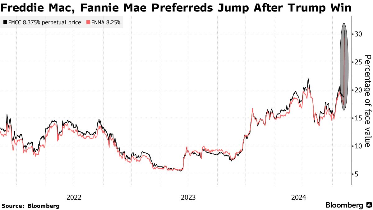 特朗普胜利让房利美和房地美的优先股“僵尸”复苏 - 彭博社