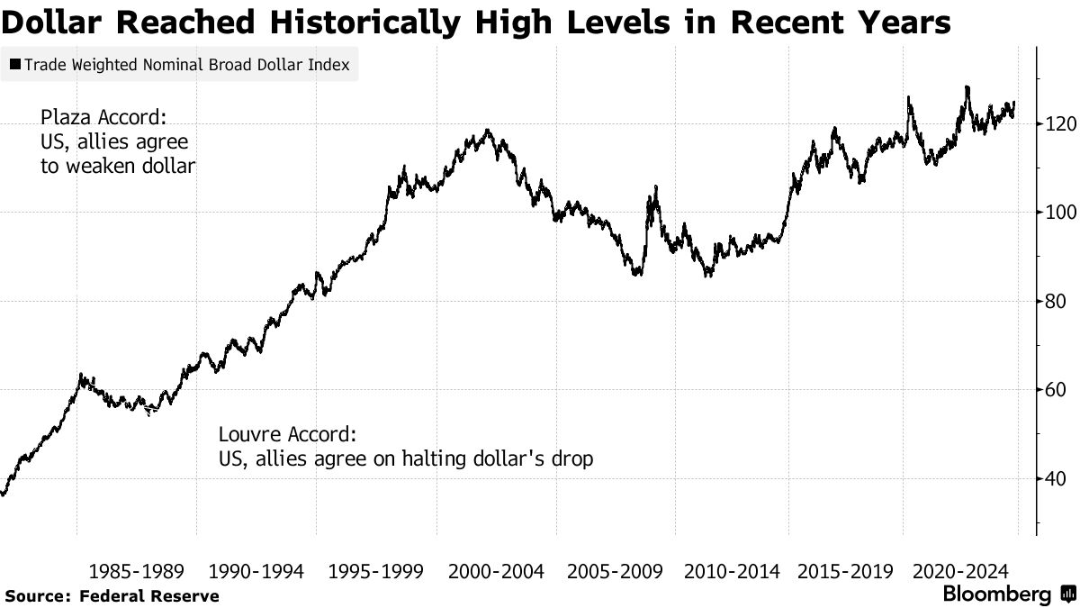特朗普在六月对彭博商业周刊表示,他在第一任期中有时使用的语言是“我们有一个严重的货币问题”,并且美元的强势对美国企业来说是一个“巨大的负担”。即将上任的副总统JD Vance也提倡贬值美元的好处。