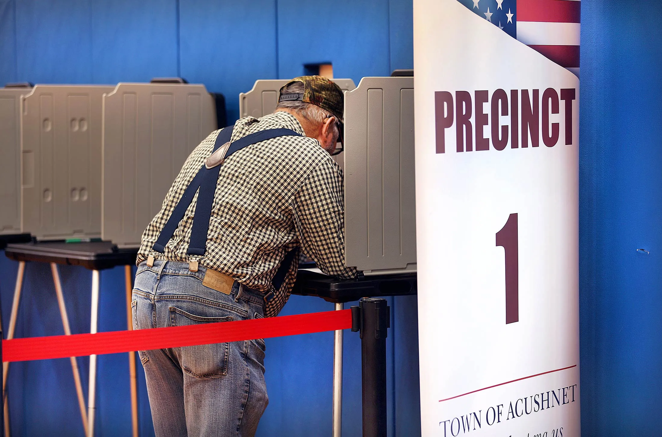 一名男子在马萨诸塞州的阿库什内特小学投票。摄影师:约翰·特鲁马基/波士顿环球报/盖蒂图片社在摇摆州之外,民调通常不太准确。例如,佛罗里达州的最终民调平均显示特朗普领先7分;他最终将以13分的优势获胜。同样,德克萨斯州的最终民调平均显示特朗普领先8分;而实际上是14分的差距。关于哈里斯在爱荷华州逆袭的潜力有很多讨论,因为该州的顶级民调机构发布了一项显示她领先3分的民调。副总统在该州输掉了超过13分。
