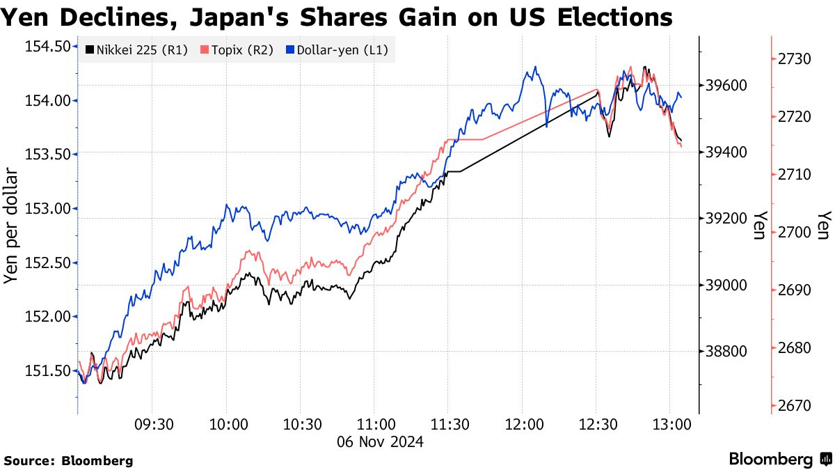 澳大利亚股票和日本股票的期货合约上涨,反映出华尔街的涨幅。 S&P 500在周三上涨了2.5%,创下了历史上最佳的选举日后表现, 纳斯达克100上涨了2.7%,均创下新高。与此同时, 美联储预计将在周四降息。