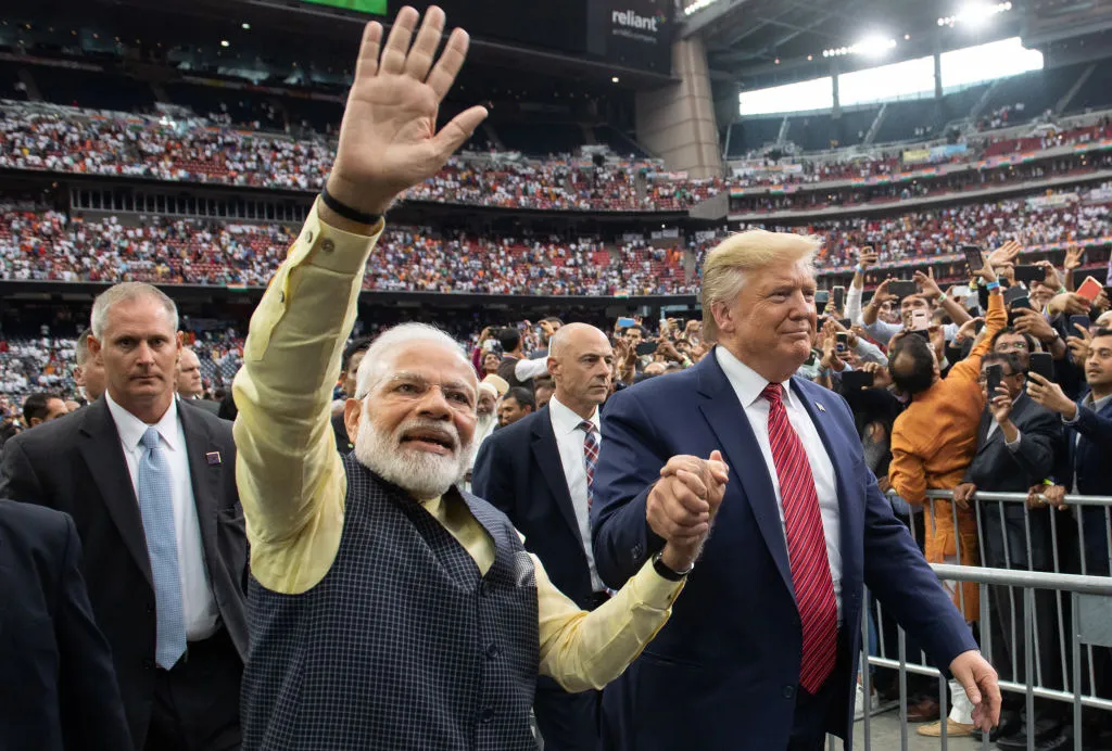 唐纳德·特朗普和纳伦德拉·莫迪于2019年在德克萨斯州休斯顿的NRG体育场参加“你好,莫迪!”活动。摄影师:索尔·洛布/法新社通过Getty Images**特朗普对美国进口商品的关税可能会产生双向影响。**对中国商品的 60%的关税可能会使印度出口更具竞争力,除非特朗普政府也针对印度工程和电子产品出口所依赖的中国输入品。