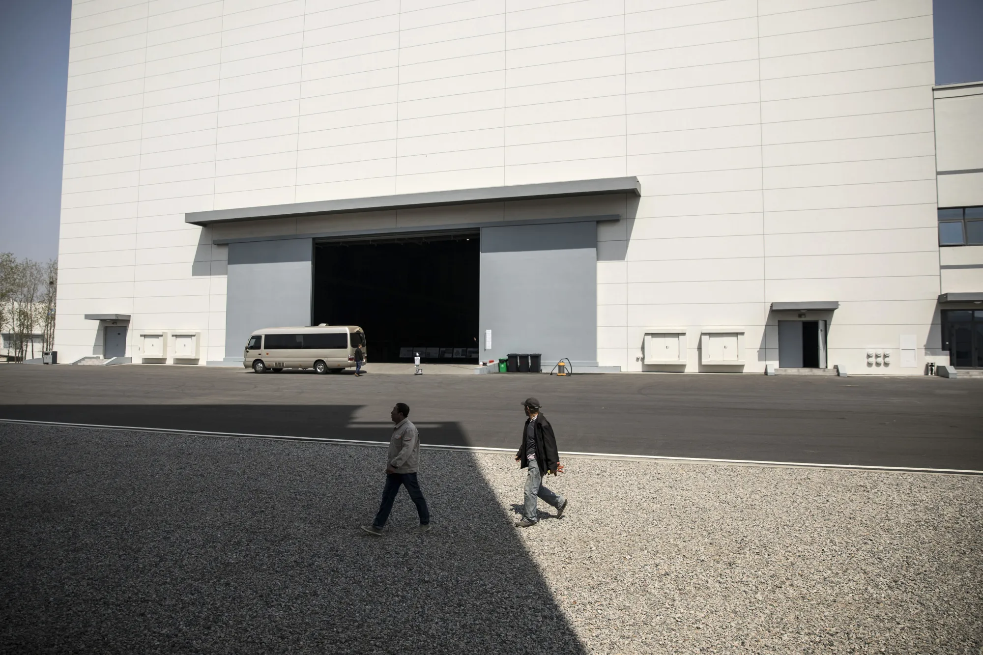 人们在中国青岛万达集团的电影制作中心旁走过。