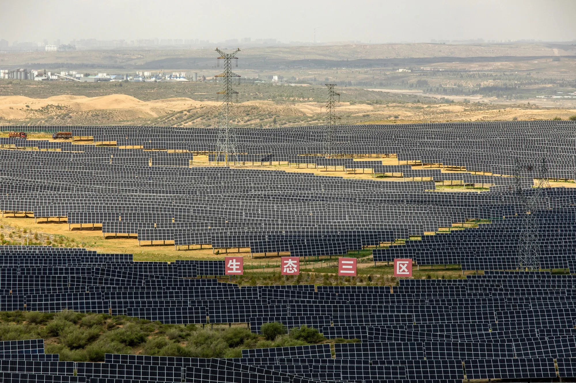 中国鄂尔多斯天骄绿色能源光伏项目的太阳能电池板。