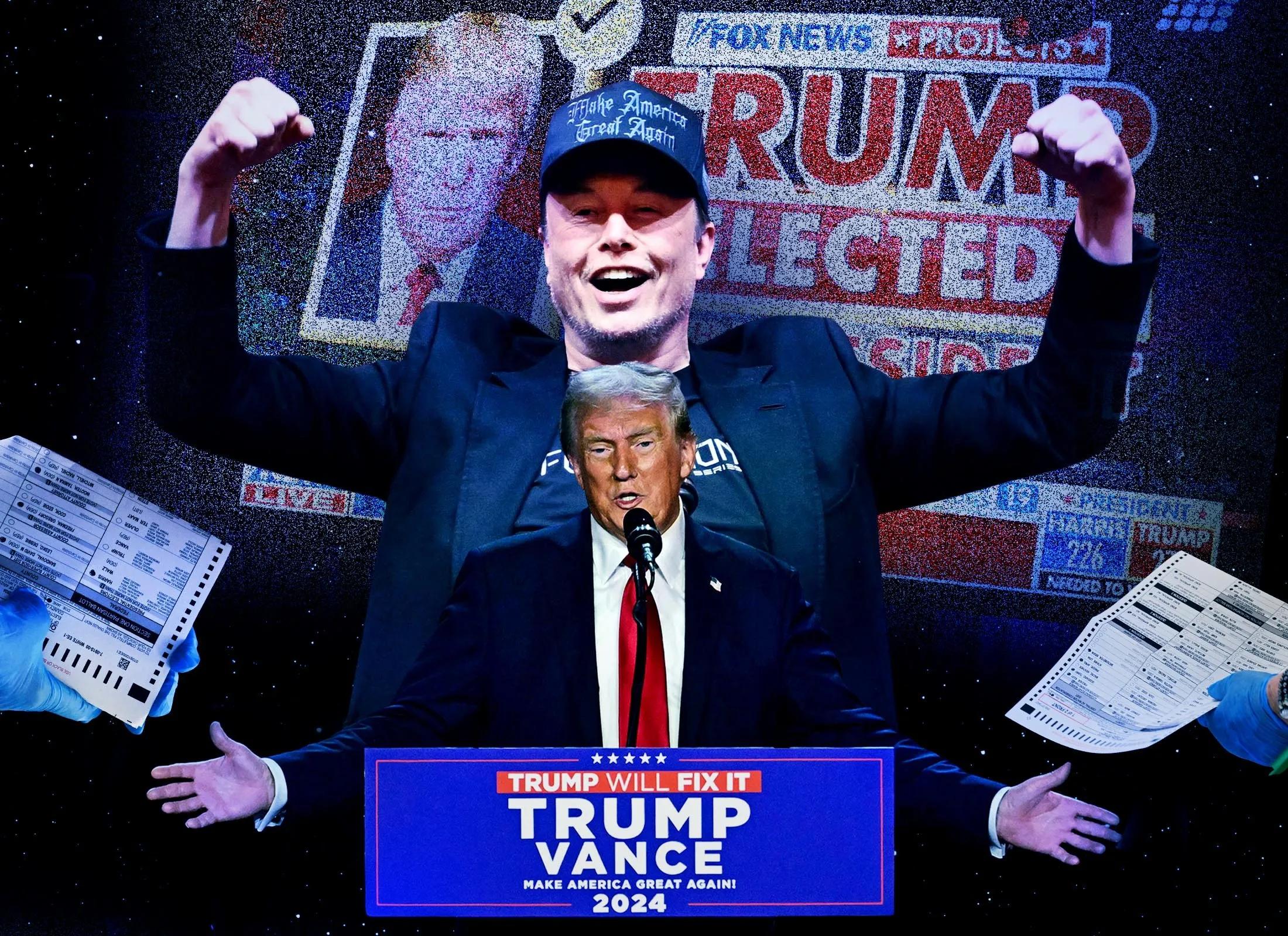 图片插图由731提供。照片:NASA (1),Getty Images (5)在唐纳德·特朗普被宣布为2024年总统选举的获胜者仅仅几个小时后,*Elon, Inc.*前往录音室进行一些处理。彭博商业周刊高级撰稿人马克斯·查夫金和马斯克记者达娜·霍尔讨论了马斯克能获得多少功劳,他如何度过选举日,以及马斯克似乎准备在特朗普的第二任期中扮演重要角色的美国接下来会发生什么。