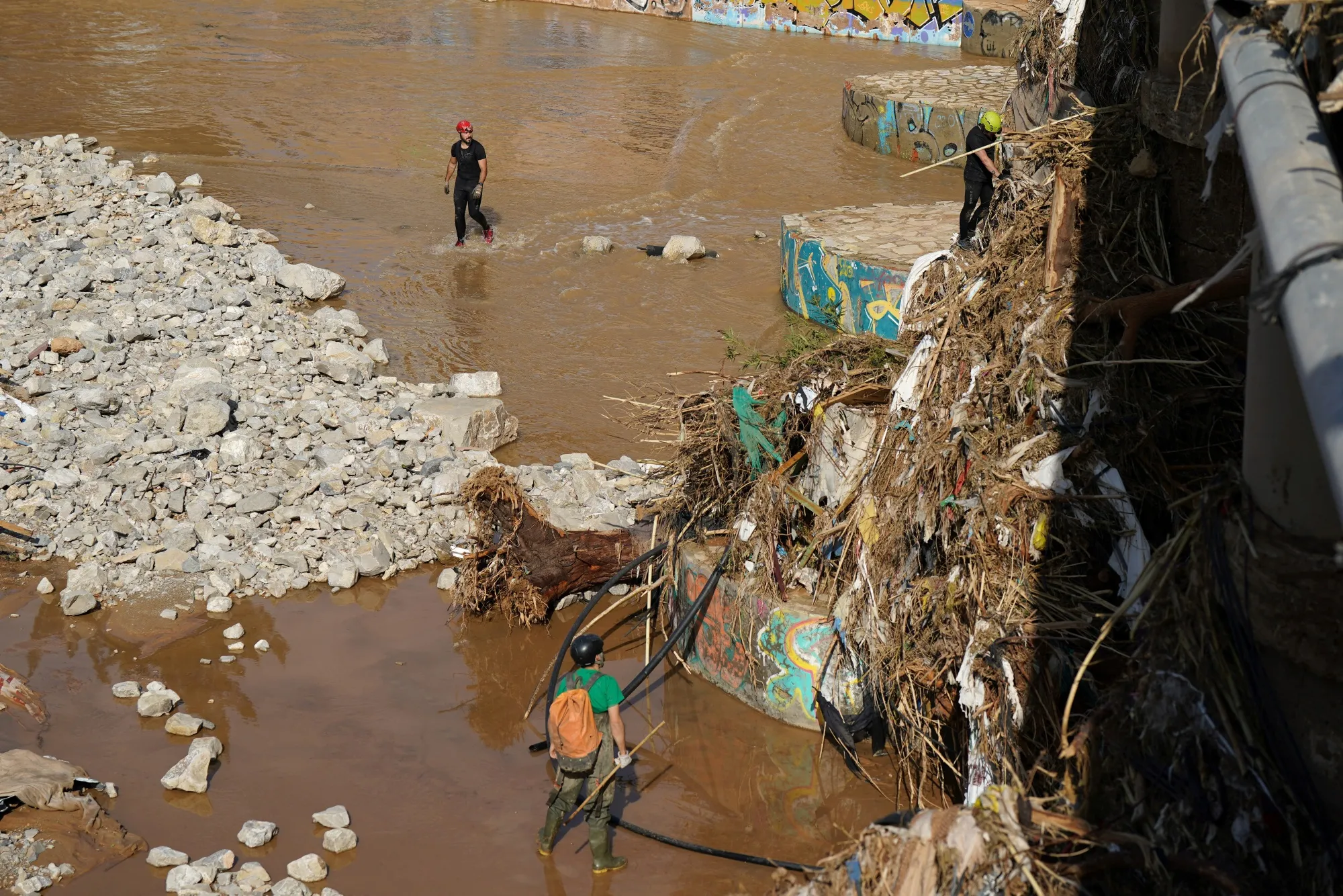 西班牙国民警卫队于11月6日在瓦伦西亚地区的卡塔罗哈搜索波约河。摄影师:塞萨尔·曼索/法新社/盖蒂图片社### 指责