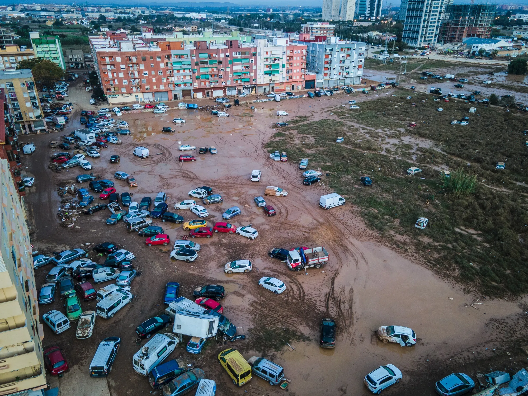 阿尔法法尔因突发洪水而受损的车辆。摄影师:安赫尔·加西亚/彭博社### 上升的风险