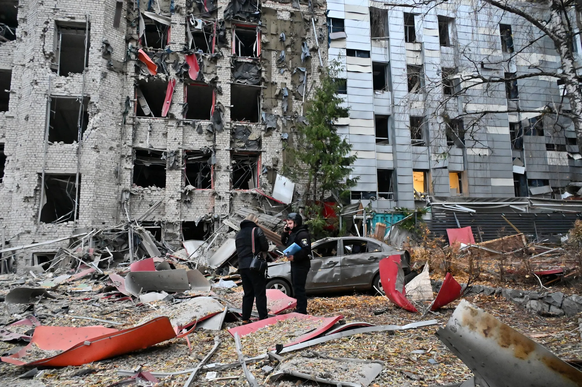 在11月8日,哈尔科夫遭到俄罗斯袭击后毁坏的建筑。摄影师:谢尔盖·博博克/法新社/盖蒂图片社欧盟领导人正在努力研究,如果唐纳德·特朗普决定停止来自美国的支持,他们是否能够继续维持乌克兰的战争努力。