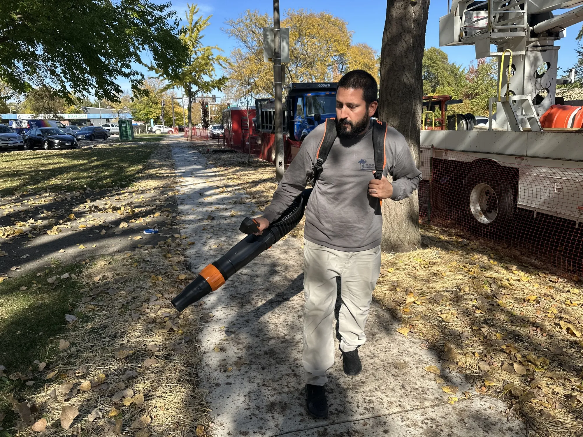 为了帮助平稳淘汰燃气设备,埃文斯顿在2023年还为商业园艺公司推出了一项补助计划,今年该市拨款18万美元用于购买电池驱动的替代设备。Hernandez和他的团队现在带着六台电动吹风机和七个电池包上阵,这些都是通过市政项目获得的。
