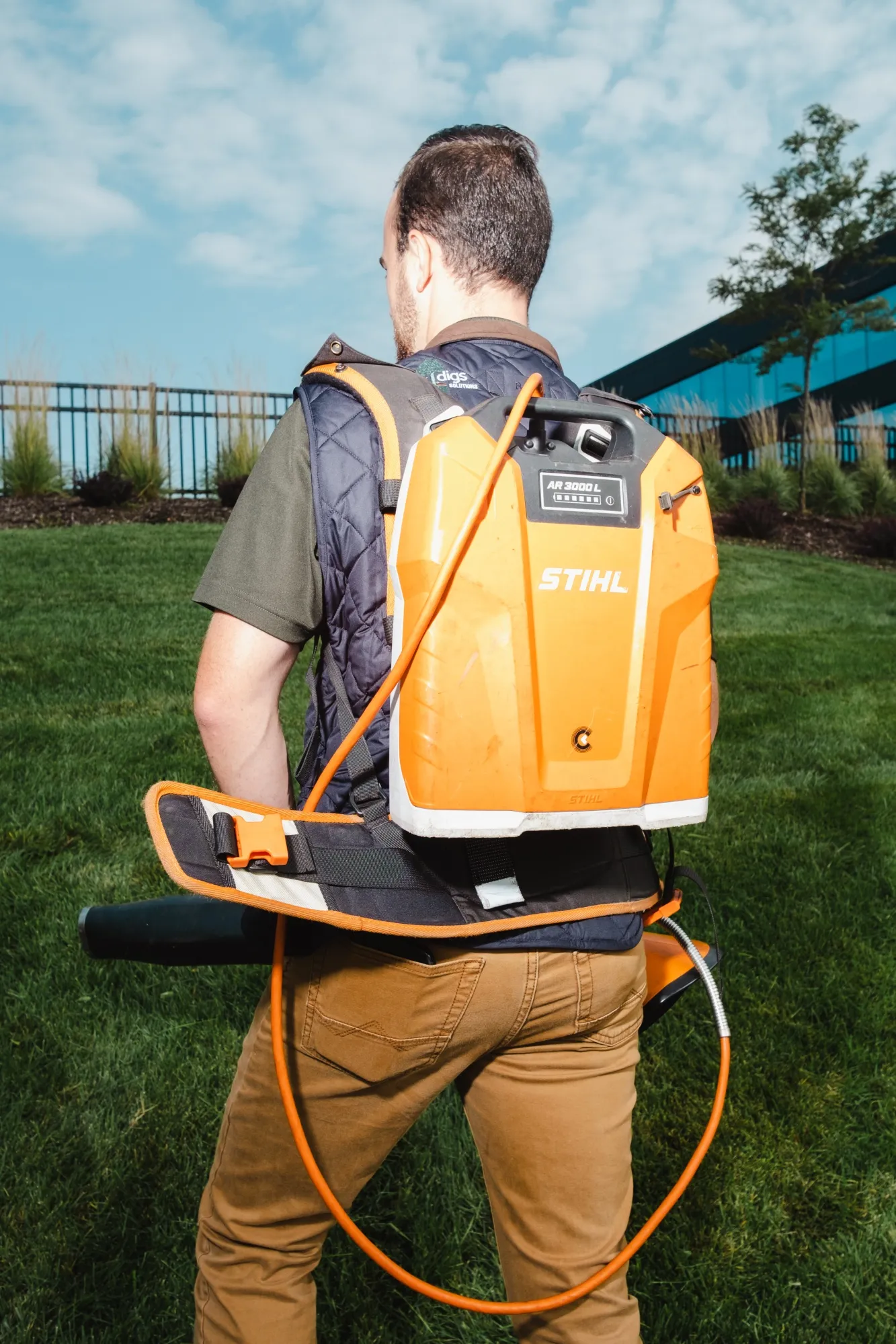 一台在2022年工作的Stihl电池驱动叶吹机。仅锂离子背包电池的成本就可能超过1200美元。摄影师:Lanna Apisukh/Bloomberg他在家中给背包大小的电池包充电。新型机器更安静且不污染,但他说他的电费增加了,而且电动版本的威力不如燃气版本。