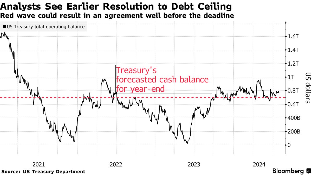 一些华尔街策略师表示,潜在的统一美国政府可能会使在财政部的借款权限耗尽之前达成暂停或解除债务上限的协议变得更容易。