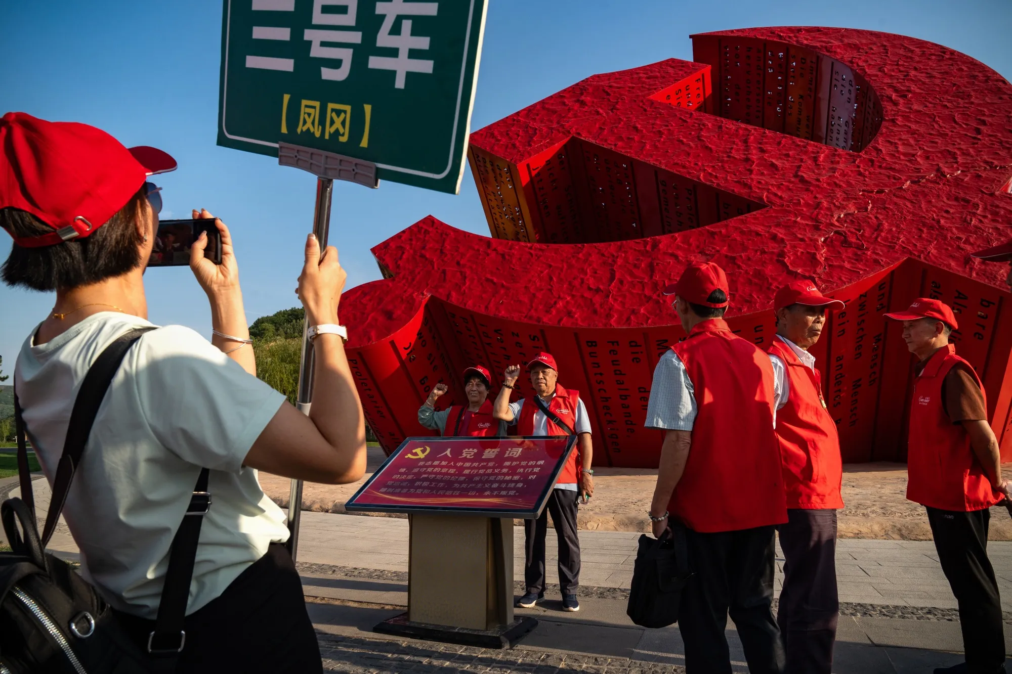 中国陕西省南泥湾的游客。与疫情前的数据相比,中国游客在长假期间花费的钱更少。