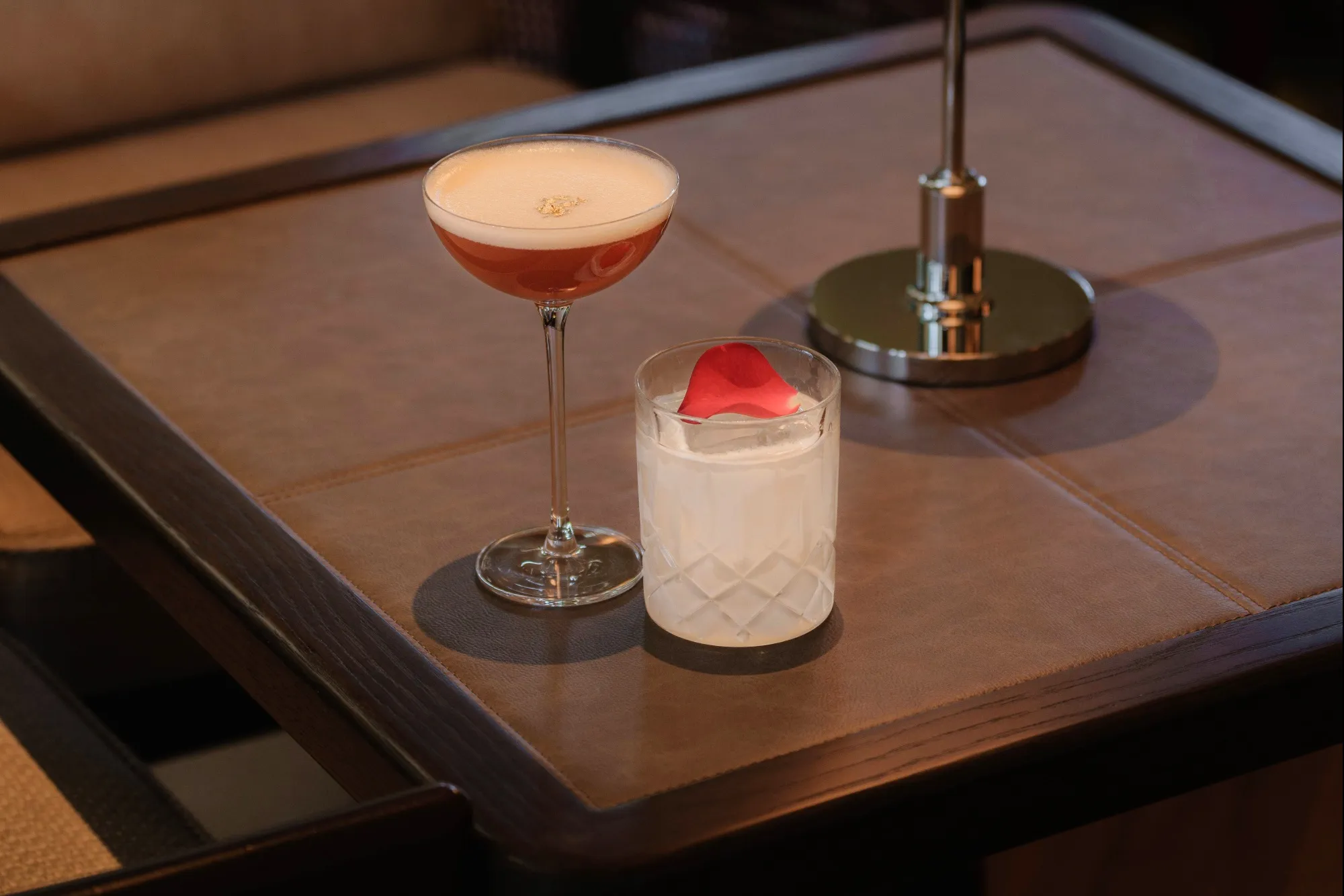 猩红色的Rouge和罗盘玫瑰鸡尾酒。来源:Capella我们会再次点的。 罗盘玫瑰,配有杜松子酒、传统香料、青葡萄和玫瑰水,价格为24新元,清爽宜人。猩红色的Rouge,价格为26新元,含有菠萝朗姆酒、杏子利口酒、青柠、豆蔻和蛋白。新加坡辣椒蟹饼,价格为25新元,是一道不错的小吃,20新元的樱花鸡肉沙爹也很不错。