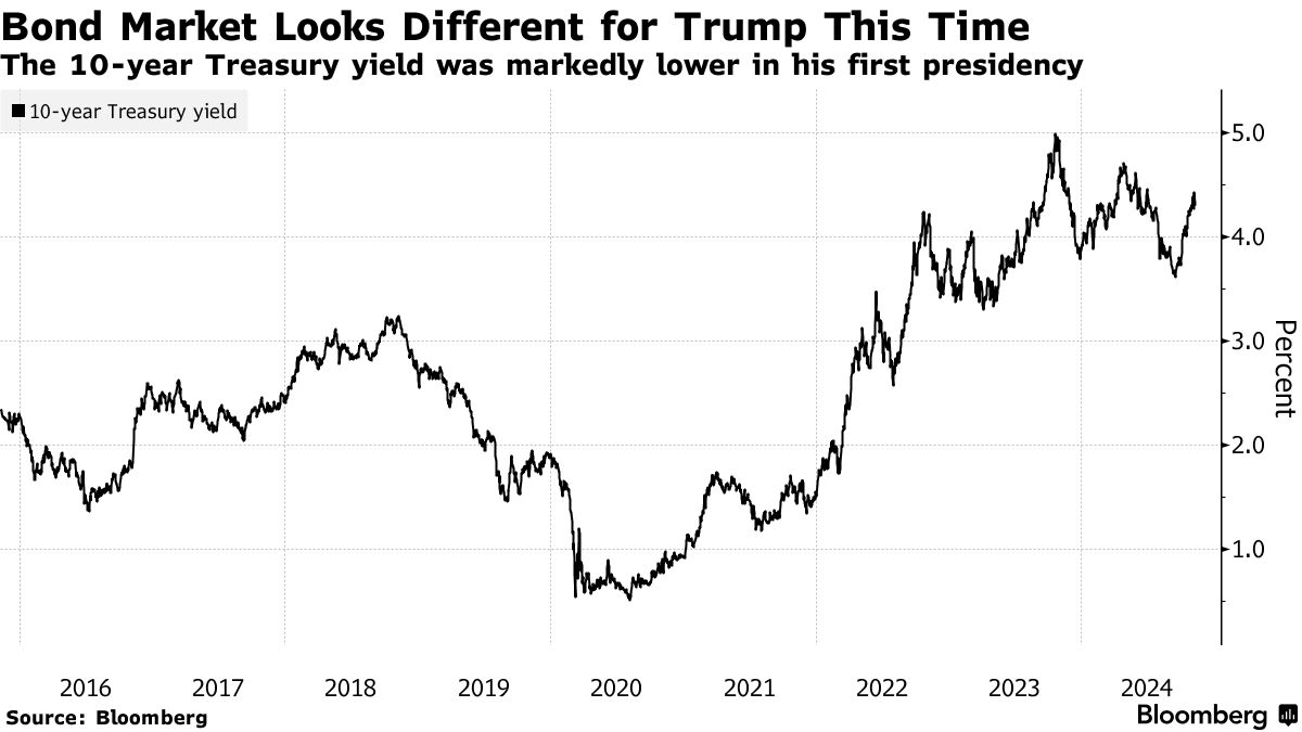 交易者对特朗普胜利反应的前提是,他承诺的减税和放松监管将继续推动股票达到新高。然而,另一方面,候任总统的保护主义贸易立场和对无证工人大规模驱逐的计划被视为通货膨胀因素,并可能威胁到经济增长。