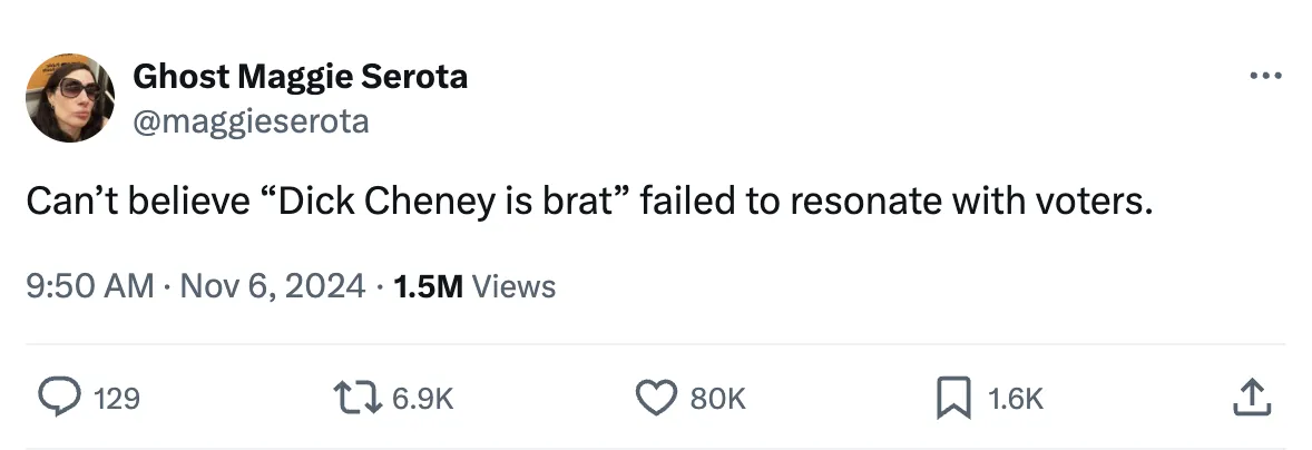 在整个选举期间,有很多关于这场运动如何受到流行文化影响的讨论,查理·XCX和椰子梗。但正如我们之前所说,所有美国人真正想要的只是一个更好的经济,按照他们的条件。这提醒我们,社交媒体*并不是*现实生活。