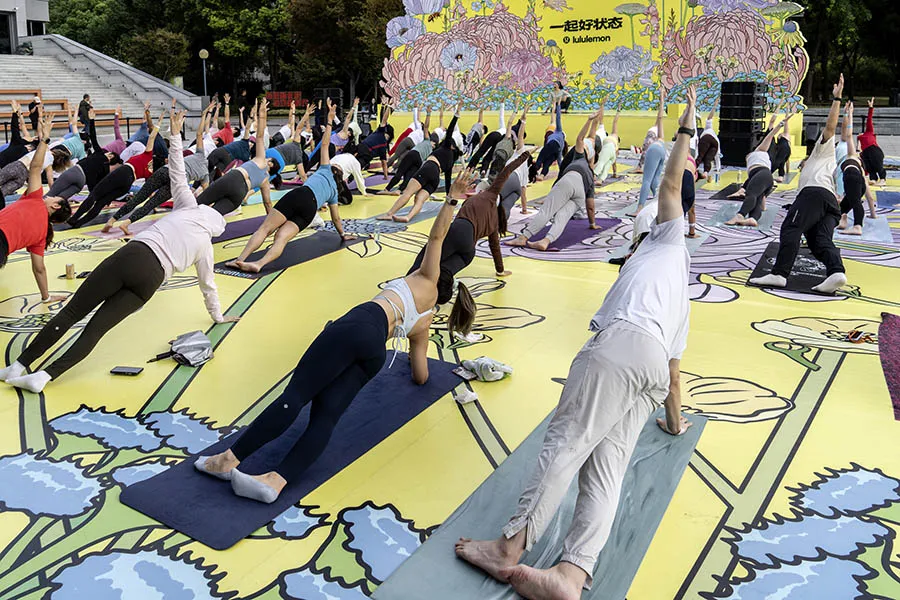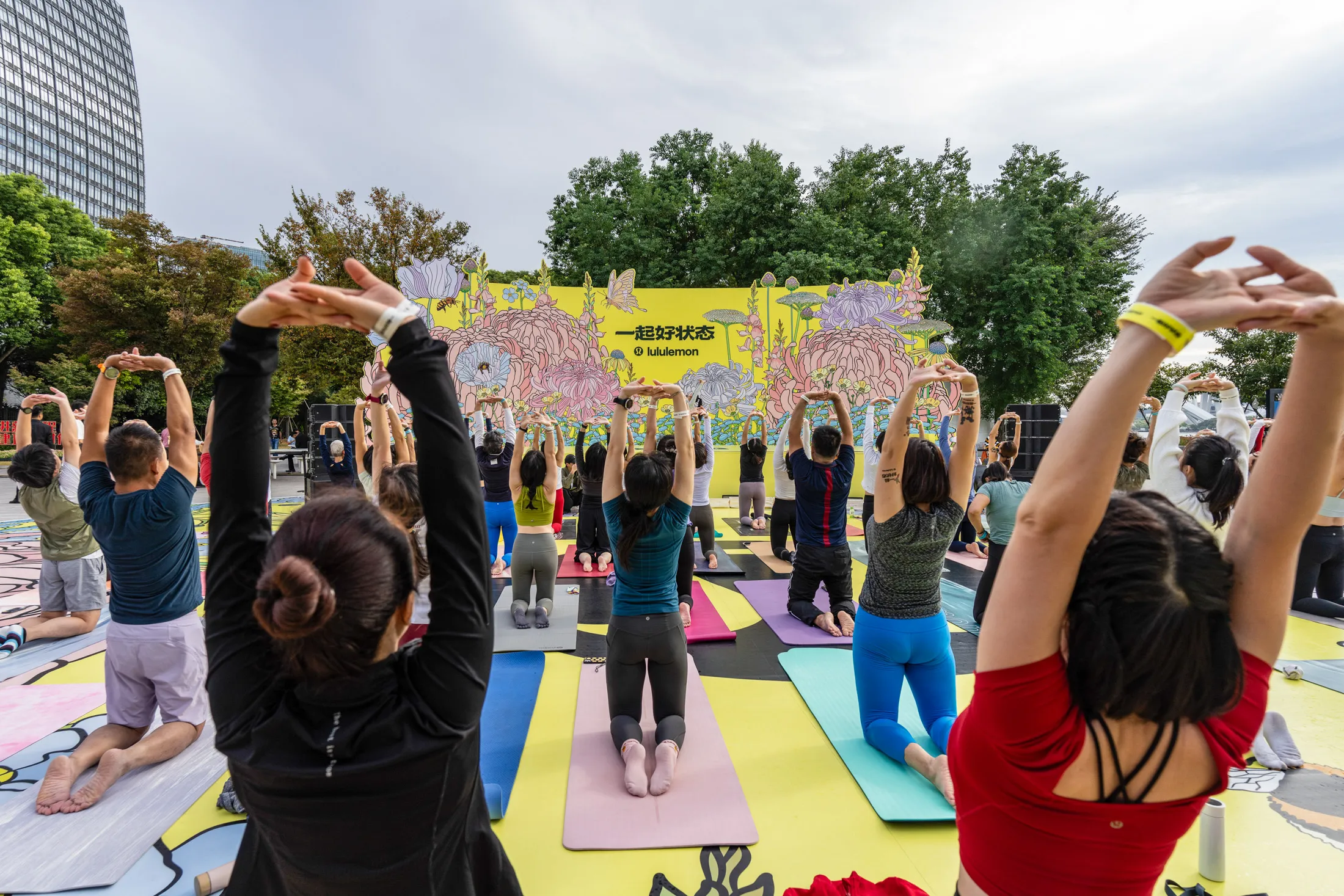 粉丝们参加了由Lululemon在上海组织的户外瑜伽活动,时间是在十月。