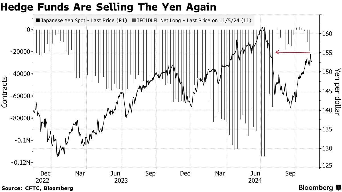 根据商品期货交易委员会的数据,投机投资者在截至11月5日的第四周增加了他们的日元空头头寸,这一天的投票导致前总统获得全面胜利。随着结果在周三公布,日元对美元贬值,但在第二天反弹,最终以略微强势的姿态结束了这一周。