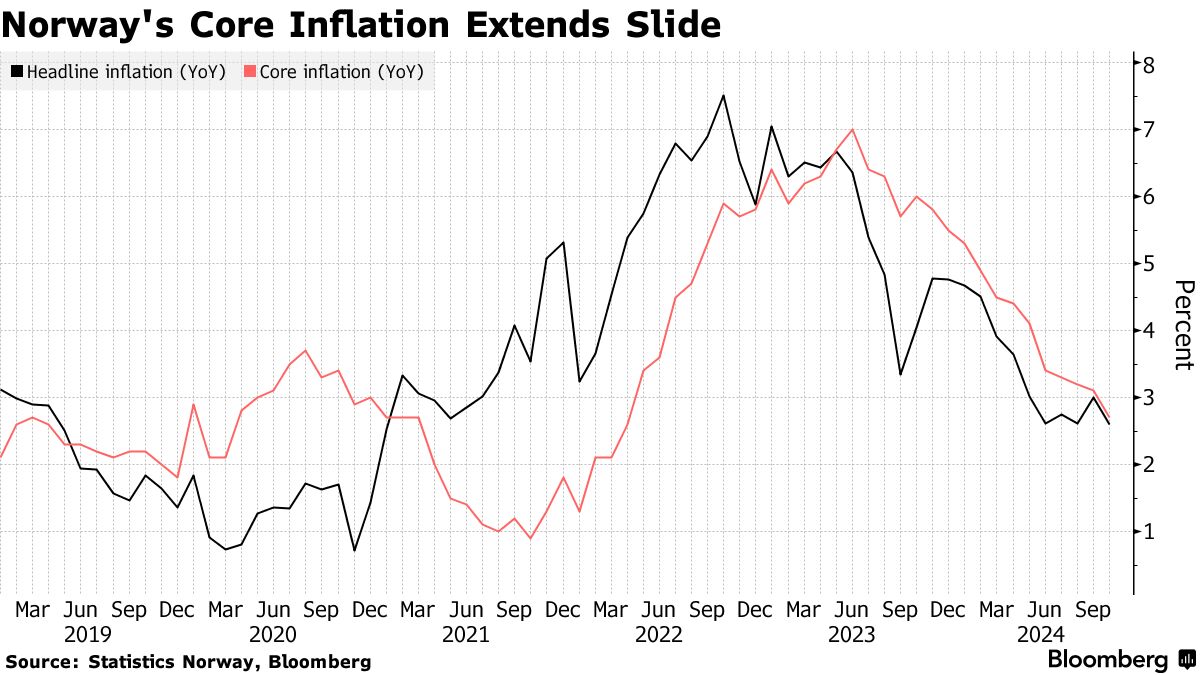 挪威核心通胀率记录连续下降的一年 - 彭博社