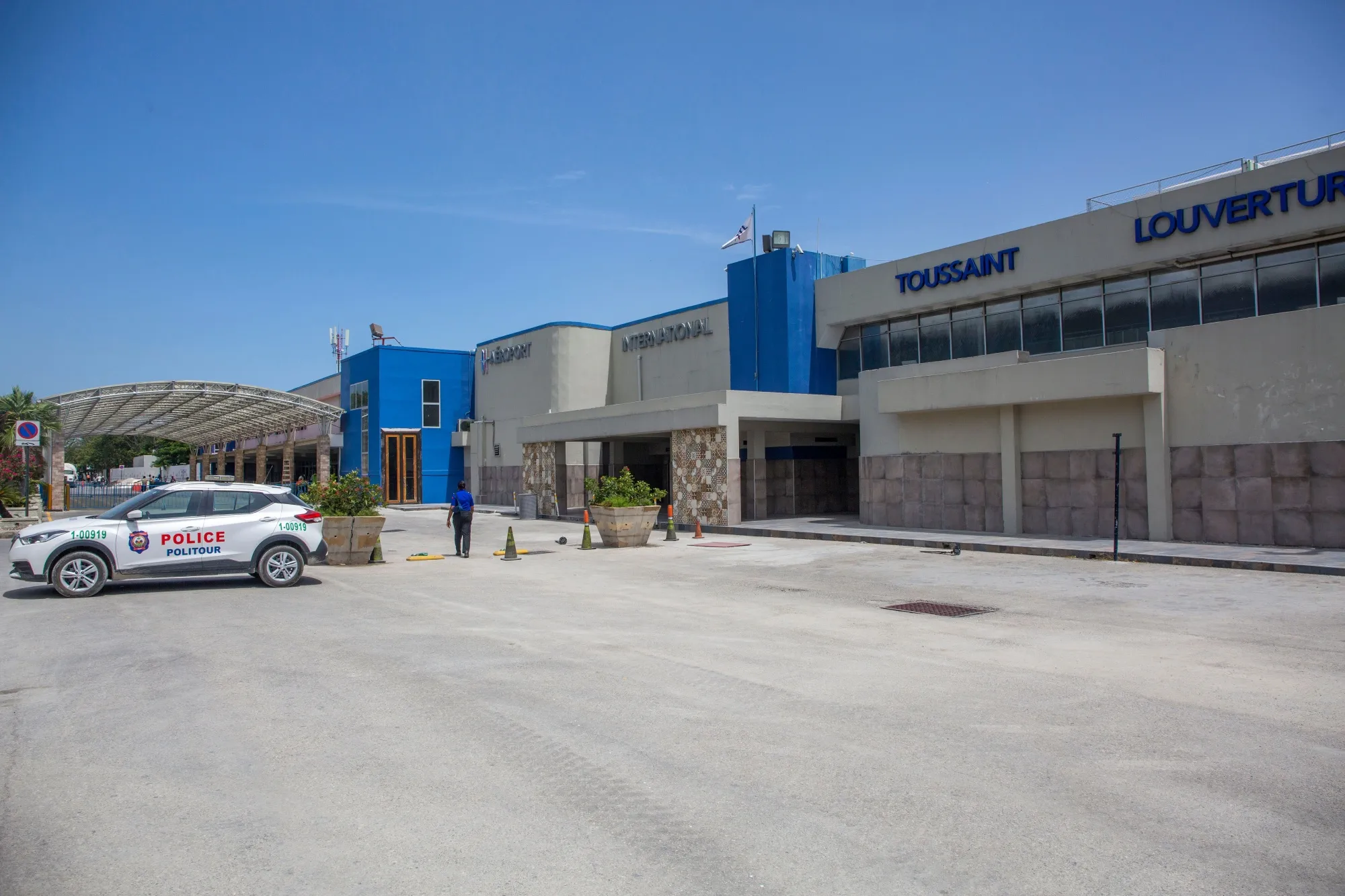 一辆警车停在海地太子港的图桑·卢维图尔国际机场外。
