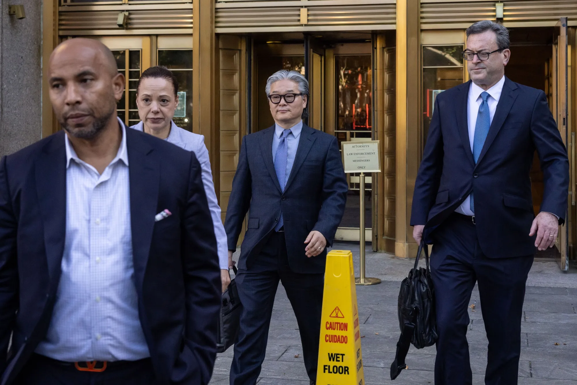 比尔·黄,中央,七月在纽约联邦法院外出。