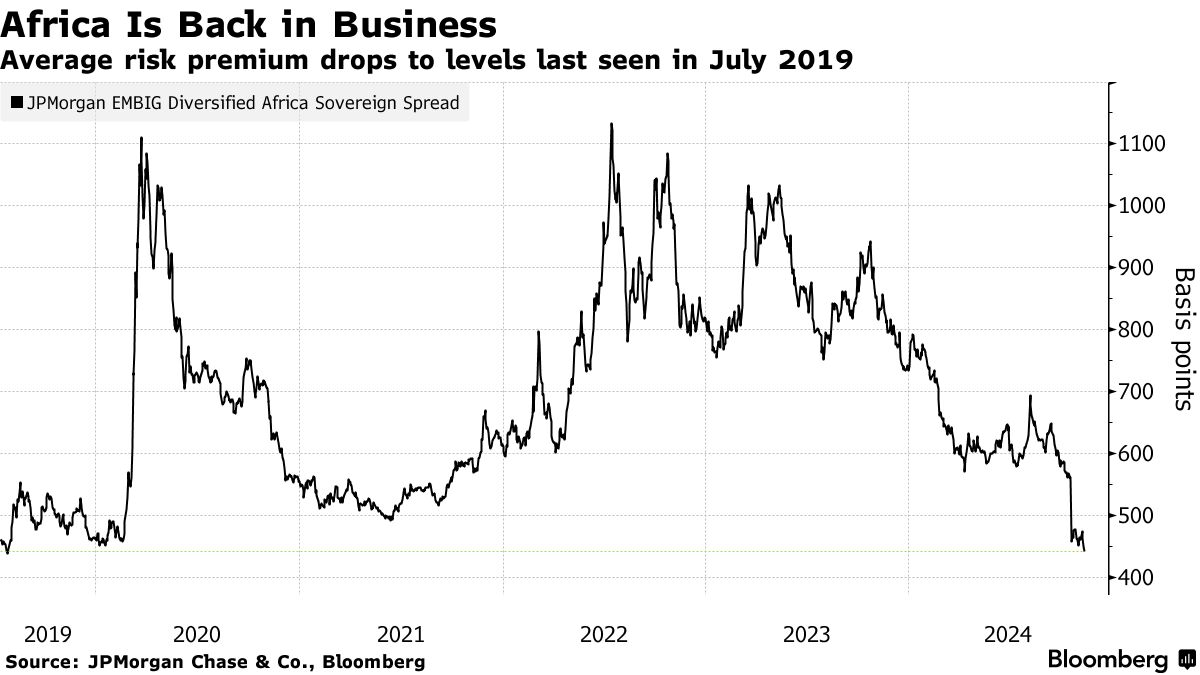 非洲主权债务相对于美国国债的溢价已降至五年来的最低点,这表明投资者对某些高收益债券的信心增强,尽管人们仍对唐纳德·特朗普第二次总统任期将如何影响该大陆感到担忧。