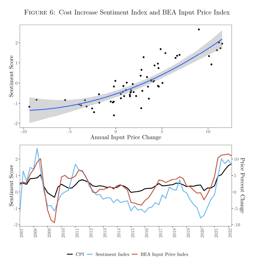 为了验证这一论点,伊莎贝拉·韦伯及其团队构建了情感评分,以判断高管们如何谈论更高的输入价格,然后将其与经济分析局(BEA)的输入价格指数进行比较。他们发现了以下内容: