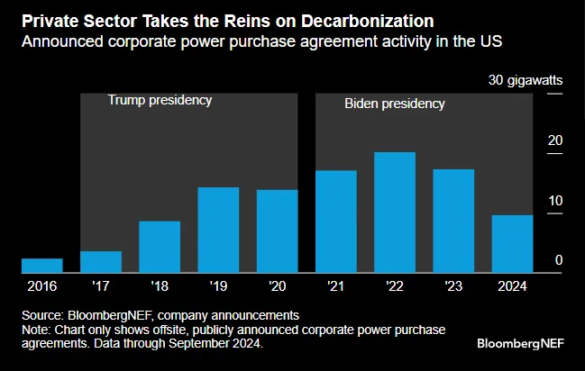 氛围在变化。选举可以成为转折点。虽然很难量化公司在多大程度上为了与新政府在意识形态上保持一致而进行转变,但像私营部门脱碳采购承诺这样的事情——如上图所示——可能是一个值得关注的有用指标。