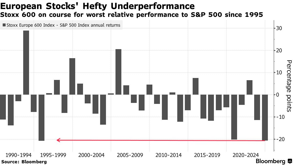 尽管特朗普的当选提升了美元和美国股市,但他的政策预计对其他地区的资产影响不佳,依赖向美国出口的国家可能会承受他提高贸易关税计划的主要影响。斯托克600指数今年相对于标准普尔500指数的表现将是自1995年以来最差,而欧元兑美元处于一年低点。