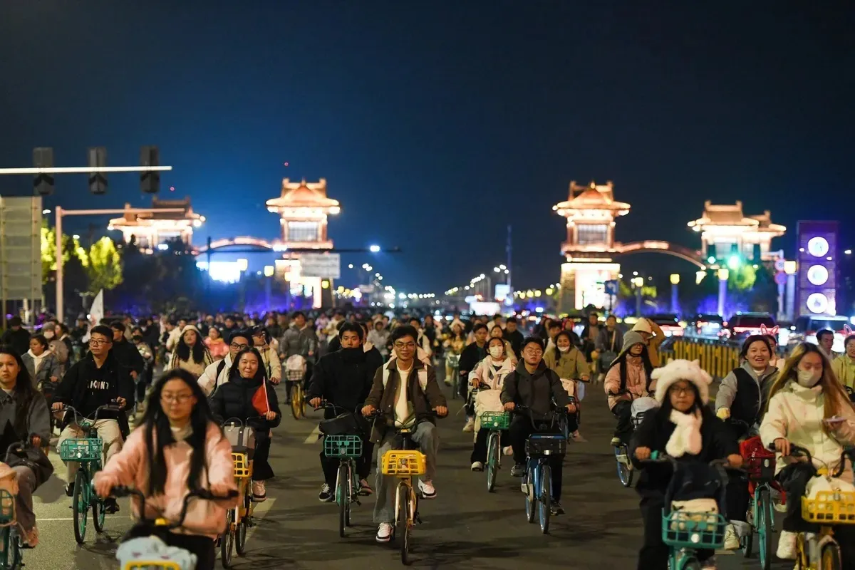 夜间骑自行车已成为中国中部大学生的最新趋势,许多人从郑州骑行31英里到古城开封观光和品尝汤包。中国当局最初认为这种骑行对当地旅游是一种促进,但在成千上万的骑行者涌入这个六车道高速公路后,他们的态度发生了变化。