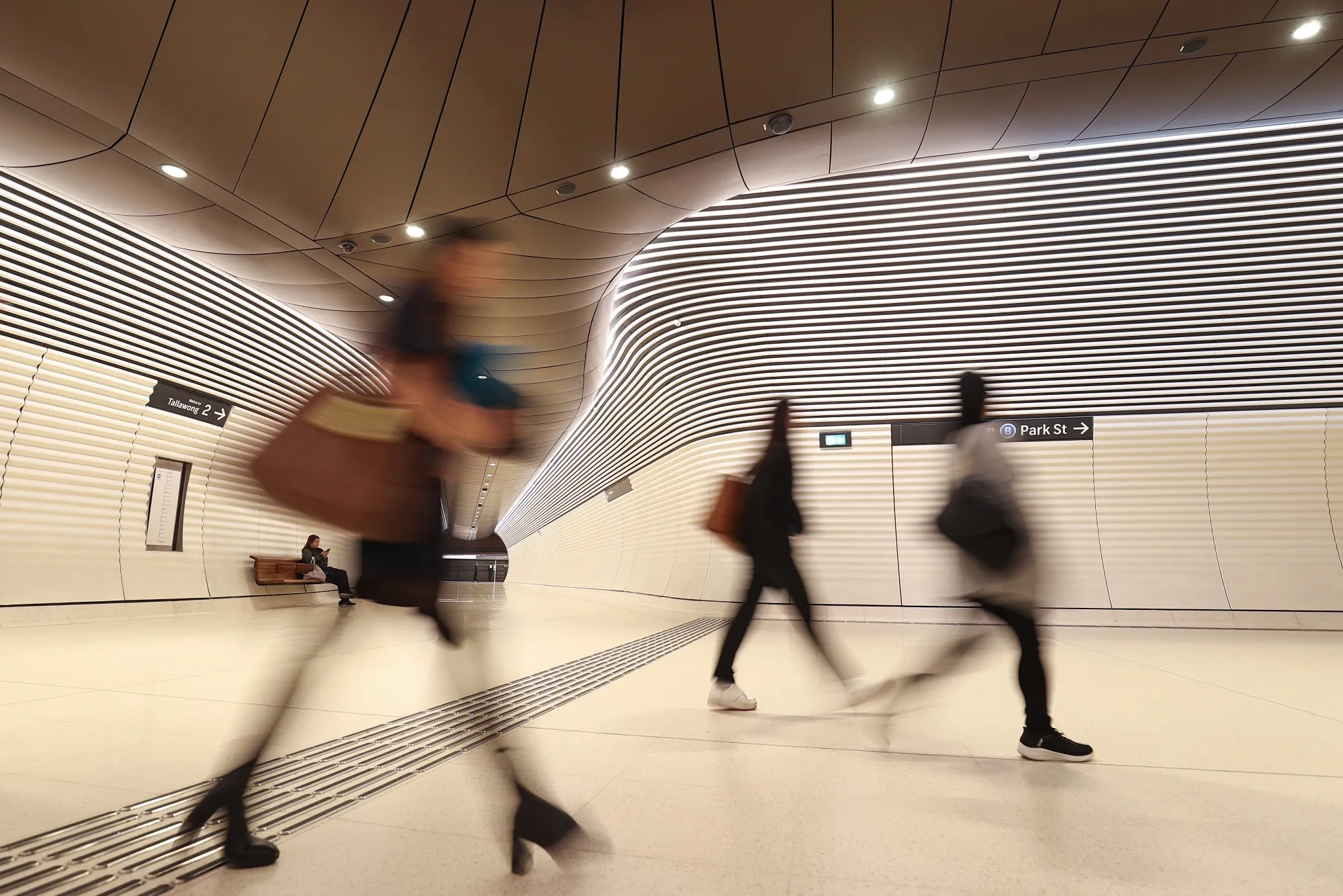 通勤者走过悉尼的Gadigal地铁站。