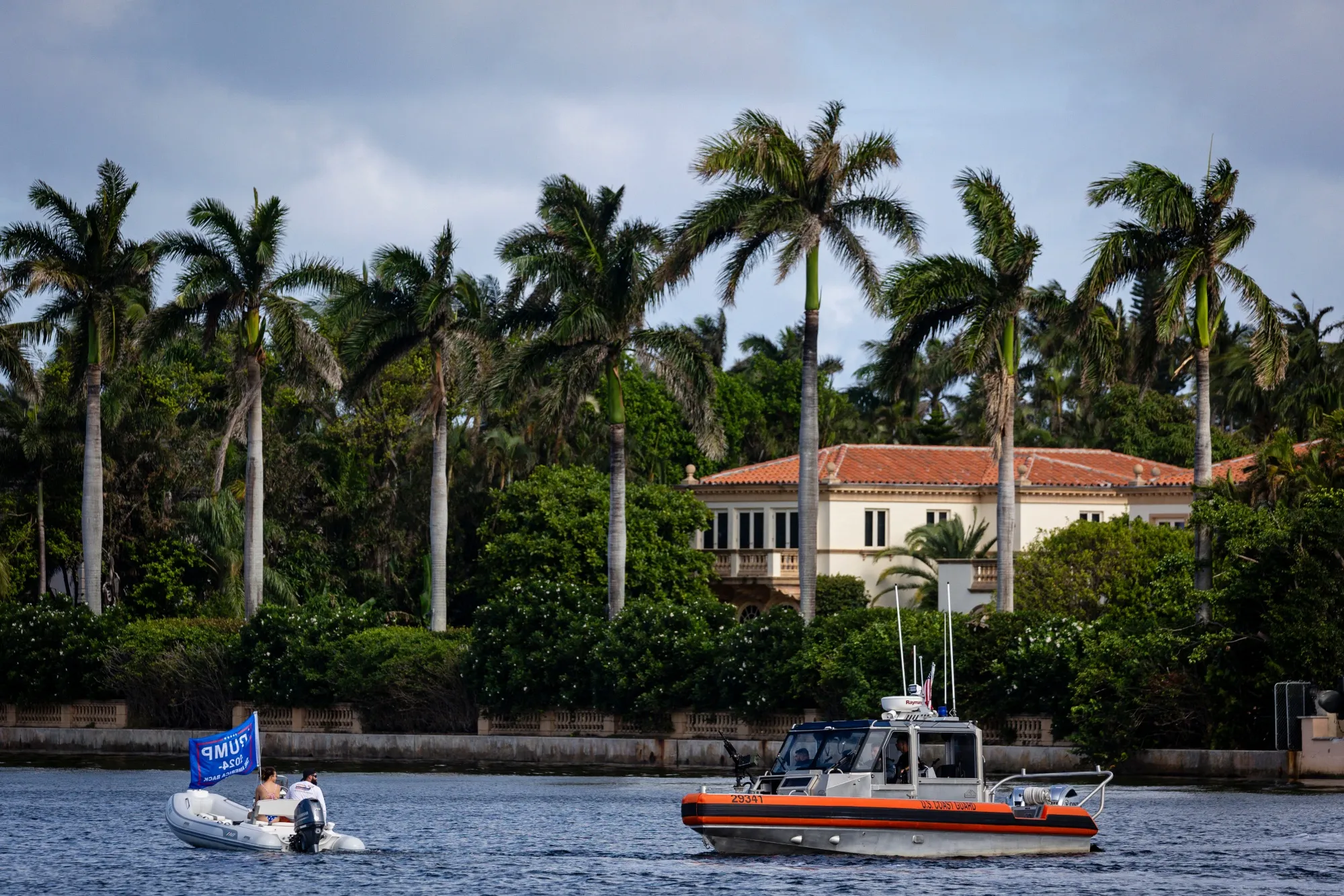 一艘悬挂竞选旗帜的船只和一艘美国海岸警卫队船只在佛罗里达州棕榈滩的马阿拉歌附近巡逻,时间是11月8日。摄影师:埃娃·玛丽·乌斯卡特基/Getty Images马阿拉歌预计将在至少到1月20日之间成为活动的中心,届时特朗普将在华盛顿宣誓就任第47任美国总统——并在他宣誓后继续成为特朗普的据点。