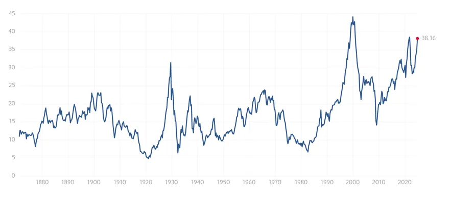 估值极高。在美联储收紧政策后,周期性调整后的市盈率回到了仅次于互联网泡沫的水平。